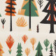 Folk art quilt illustration with Christmas trees, shapes in bold colours. Scandinavian style
