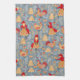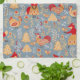 This Scandinavian inspired Kitchen Towel features a whimsical fox and chicken pattern with yellow, and red designs on a blue background and coordinates with the "Velkommen" Collection. The perfect kitchen towel for any kitchen.