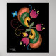 This poster is an illustration is in the style of Rosemaling, a folk art that originated in Norway. As a graphic designer with Scandinavian heritage, I have always loved Rosemaling designs, the patterns of arcing paint strokes, flowers, and homey images in bright colors. Illustrated with jewel-deep tones on a black background, this poster will be a striking addition to your decor.