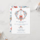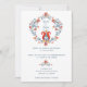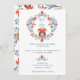 Inspired by the traditional Norwegian rosemaling painting style, this wedding invitation features a blue swirl circular border design with yellow, grey and red flowers on a white background The text portions of this invitation are customisable and the back of the card showcases a larger coordinating folk art pattern. This item is part of a collection, please visit our store Borghild's Boutique for other matching items.