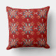 Scandinavian Folk Snowflake Pattern Red Background Cushion