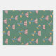 Scandinavian Folk Style Floral Pattern in Green Wrapping Paper Sheet