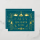 Scandinavian Happy Holidays Year Teal Foil Holiday Postcard