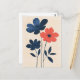 Cobalt petals and coral stems contrast against a warm cream background, blending graphic strength with floral simplicity.