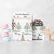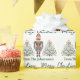 This custom wrapping paper features a Scandinavian Christmas theme on a plain white background. An image of a Nutcracker printed between two Scandinavian style Christmas trees is tiled across the gift wrap. A sample "Merry Christmas" greeting is printed above the nutcracker in an elegant script font. A sample family name is printed below the image which you can personalise to include your own custom name or text.