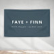 Simple, stylish custom wedding banner in a modern minimalist scandi scandinavian design style with a contemporary typography in white on a dusky smoke blue background in an informal casual style. The text can easily be personalised for a unique one of a kind wedding favour for your special day.