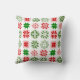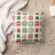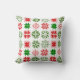 This throw pillow has a Christmas design of different snowflakes in red and green in rows.