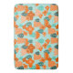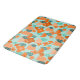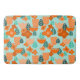 This bath mat has a Scandinavian design of flowers and leaves in various shades of orange and teal.