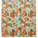 This shower curtain has a Scandinavian design of flowers and leaves in various shades of orange and teal.