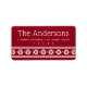Dark red or any color return address labels with your name in a cute display font with the return address below. Along the botton is a traditional Scandinavian star pattern border. You can change the background and font colors to any custom colors with the design tool.