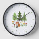 Scandinavian Style Fox Flowers Trees Illustration Clock