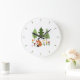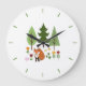 Scandinavian Style Fox Flowers Trees Illustration Large Clock