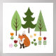 Scandinavian Style Fox Flowers Trees Illustration Poster