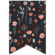 Modern Scandinavian style folk flower pattern in pastel colours on a dark background.