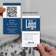 The Scannable Black, Blue & White Portrait Business Card template with Logo and QR code is part of the Blue & White Business Card & Marketing Items Collection. Insert your QR code details, name, position and company, phone number, email and company details. The return side holds placeholders for a logo, a service list of four items and how to connect through social presences. For more branding ideas visit www.KBMD3signs.com and for customisation assistance or to enquire about a custom design contact us at info@KBMD3signs.com.