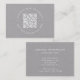 This minimalist business card in grey features a clean design with a QR code linking to social media profiles. It's perfect for professionals aiming to make a sleek and effective impression while integrating digital connectivity for enhanced networking and engagement.
