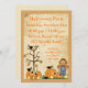 Halloween invitation with scarecrow and pumpkins. Easy to customise with your party details.
