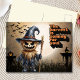 This fun and slightly eerie Halloween postcard features the "Scarecrow Harvest Hunter," a mischievous figure donning a witch's hat, with two ominous scarecrow companions lurking in the background. Set against a spooky moonlit backdrop, the orange grunge bold text "The harvest is coming for you!" adds a playful scare, making it the perfect choice for sending Halloween greetings or adding a touch of spooky charm to your seasonal collection.