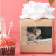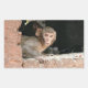 Rectangular sticker of a scared monkey with big eyes looking like it is frightened by something or like it suddenly remembers something.