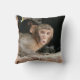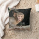 Throw pillow of a scared monkey with big eyes looking like it is frightened by something or like it suddenly remembers something.