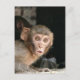 Vertical postcard of a scared monkey with big eyes looking like it is frightened by something or like it suddenly remembers something.
