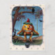 Scared pumpkin on a swing at Halloween night Postcard