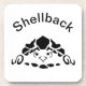 A scared turtle hidding in his shell. Illustrated from the front view in a black stencil style.