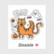 Add a touch of humour to your spooky season with this “Scaredy Cat” sticker! Featuring a terrified cartoon kitty puffing up at the sight of playful ghosts, this adorable design is perfect for Halloween lovers and cat fans alike. Great for decorating laptops, water bottles, notebooks, or handing out as festive party favours.
