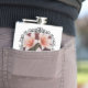 The flask itself is fine. It’s a cheap flask, obviously bought in bulk, however am prepared to overlook that. Given that it is a personalized item, I would have liked to have seen gift boxing instead of the generic packaging. Terrible printing, and/or quality. It’s a cheap, tacky vinyl. It is not cut straight and is also applied in a way that it is overhanging the bottom, causing the glue to catch on items and it will eventually roll and tear, damaging the wrap.