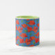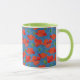 A chic Coffee Mug, with a green lip and handle and Scarlet Field Poppies on a Rich Blue background (excellent gift for anyone with an August Birthday). From a hand-painted paper collage by Judy Adamson, this bright, floral design is part of the Posh & Painterly 'Poppy Fields' collection.