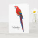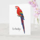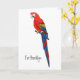 This design features a happy bright red scarlet macaw parrot in cartoon illustration style.
