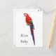 This design features a happy bright red scarlet macaw parrot in cartoon illustration style.