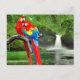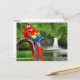 Animal card showing two amazing and colorful scarlet macaws sitting on a branch in the rainforest. The scarlet macaw (Ara macao) is a large, red, yellow and blue South American parrot, a member of a large group of Neotropical parrots called macaws. It is native to humid evergreen forests of tropical South America. Range extends from extreme south-eastern Mexico to Amazonian Peru, Bolivia, Venezuela and Brazil in lowlands.