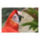 Closeup photo of a scarlet mackaw posing for the camera. The parrot is showing off his beautiful red feathers in this head shot of a tropical bird from Costa Rica. There are some tree leaves in the background of the photo. You can have this funny mackaw picture printed on many different pictures. Any bird lover would enjoy this candid wildlife photograph of a scarlet mackaw in its natural habitat.