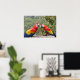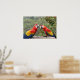Photo of two scarlet mackaws in the wild, sitting on a fountain and eating some fruit. This mackaw photo was taken in tropical Costa Rica. The parrot's bright red, yellow and blue feathers are brilliant against the background of tropical trees and fields of fields of flowers and crops. This cute bird couple would make a great Valentine's Day gift and can be easily customised and printed on many different products. Celebrate love and romance in the bird world with this touching pictures of mackaws!