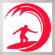 Cool Scarlet Red surfer silhouette riding a wave on a surfboard. Great gift for anyone from professional surfers to anyone that simply loves to surf as a hobby. Images used on this item are licensed and © Graphics Factory.com