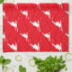 Scarlet Red, White, Chevron, Snow Ski Tea Towel