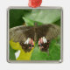 This pretty pendant style ornament features a photograph of a beautiful tropical butterfly. This species is called a Scarlet Swallowtail Butterfly (Papilio romanzovia). It has beautiful black and scarlet markings all over its wings. It comes from the Philippines. The photograph was taken using macro photography for a stunningly detailed result.