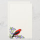 Original fine art design of a male Scarlet Tanager by avian artist Carolyn McFann of Two Purring Cats Studio printed on quality and customisable stationery for wild bird fans.