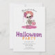 While most text is captivatingly black, the words "Halloween" appear in a deep, mysterious purple, and "Party" gleams in a spellbinding shade of orange, infusing the invitation with a sense of anticipation and magic.