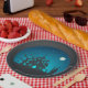 The centerpiece of these chilling plates is a creepy haunted house, its intricate details and foreboding silhouette capturing the essence of the supernatural. Against the backdrop of the vivid blue ombre circle and deep black background, the design comes to life, transporting your guests to a realm of mystery and suspense. A creepy barren tree stretches its gnarled branches towards the moonlit sky, while a menacing hooded figure lurks nearby, adding an extra layer of intrigue to your table.