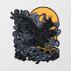 Graphic illustration of a scary Black Crow with the Moon behind it.