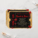 Haunted House Party Ticket Invitations, features aged crinkly paper with faux drops of blood on the front and back. Black ticket style foreground. customise with your party info. Makes a great, unique invite for halloween or any occasion! Styled to resemble a real admission ticket with faux cutouts and faux perforated sides, this bold and fun invite is great for a party at any age!