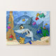 Challenging puzzle of a cartoon shark swimming with the fishes.