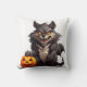 Scary cartoon wolf with a Halloween pumpkin Cushion