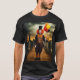 Step into the eerie world of our "Scary Clown Portrait" t-shirt, where vintage ochre tones and a gothic graveyard backdrop set the stage. This hyper-detailed design features an extreme long shot of a scary clown with striped costume, big red curly hair, a top hat, and a sinister smile, holding orange and black balloons. Perfect for those who embrace the darker side of art, this t-shirt evokes feelings of lovecraftian horror, anxiety, and panic. Crafted from premium fabric for comfort and durability, it's an ideal choice for those looking to add a touch of macabre style to their wardrobe.