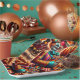 Halloween paper plates. Do you find clowns and carnivals creepy? Then here is some scary Halloween supplies for you. Vintage spooky clown at the retro carnival holding a jack o' lantern and a bowl of candy surrounded by Halloween balloons.