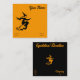 Square business card or personal call card in orange background with a scary flying witch. On the back side of the card, the colours are reversed. It is easy to personalise both sides with the details of your own witch or magic business. Clip art from Zazzle Fonts composition by Alma Wad It comes 100 per pack.