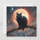 Pictured On A Gnarly Tree Branch In Front Of A Full Moon With Flying Bats In The Background Is A Black Cat With Orange Eyes.