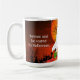 This Halloween coffee mug features a collage of a black cat in a spooky graveyard and a ghost. Each illustration used in this design was cut out from a photograph then was handset as an overlay. Use this mug throughout the Halloween season for daily drinkware or for a party.